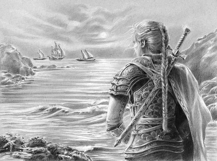 The blue water of the Eryos Ocean was pure and deep. A wind blew from the northwest. Northern winds were a rare occurrence but seemed fitting for their departure, bringing the faintest scent of the unknown continent they were to sail for. Rowan looked away from the surging swells that rolled under the dock and studied the rocky shore of the bay. The wind caught a few loose strands of her hair, tugging them free of her long braid. Her small party stood on the shore, going once more through last-minute packing and organizing She could hear their excited voices now and then. Their horses stood in a milling group beyond and Rowan made out the grey flashes of her big stallion. Her mother and brother had seen her off from the city earlier this morning, but she had not wanted them to come to the port, needed time to herself before she and the others embarked on the foreign ship. Her cousin Dell was off to the side, perched upon a huge boulder rooted in the churning surf. Like her, he needed to be alone for a last farewell to their island home. Most of their small party had said their goodbyes back in the city, except for Lesiana, inseparable from her husband until absolutely necessary. Rowan turned her back on the rising volcanic hills of the island to face the sparkling ocean again. After the banquet last night with its fanfare and revelry, the morning was quietly portentous. She flexed her hands into fists and relaxed, exhaling. The sense of the gravity of their mission would not leave her. Myrians were very supportive of sending aid to the mainland, even when they knew little of its people, but Rowan suspected that many of the islanders did not completely understand the nature of the mission they had voted to send to Eryos. She had woken long before dawn to sit, awaiting the soft glow of the rising sun as it filtered through the open fretwork of her room. She had been suddenly afraid she would never again see the sun rise over the land of Myris Dar. When she and Dell had spoken last with the Seers, they had been cautioned that their small party would face hardship in the distant lands but that strength of heart would succeed at times when strength of arms failed. In typical fashion, the Seers had given no details or further help beyond the vague, cryptic warning. Rowan shook her head and sighed, glancing to the side at the rising shoulders of the bay. The green of the spring grass had faded to the customary golden hues of summer. Only the olive trees and terraced gardens retained their verdant colour. Seabirds called from overhead, their long narrow wings suspending them on the strong wind, floating in place with only a ruffle of feathers to attest to the effort. Rowan watched wistfully as they spied fish and folded their wings to plummet headfirst into the sea. The smooth round head of a cellion popped up above the rolling surface, its liquid brown eyes regarding Rowan with curiosity before it slid beneath the waves, oscillating one of its flippers as if in farewell. She reached up and adjusted the baldric that carried her sword strapped to her back and caught sight of the intricately tooled leather of the new vambraces her brother Andin had given her last night. She smiled. He had made them for her himself and been so proud to see her wearing them this morning. Rowan looked to the edge of the bay as movement caught her eye. Three ships hove into view around the tip of the headland. They were making good time in the strong wind. The two smaller, sleeker ships were Myrian, their narrow prows slicing through the waves with precision. The larger ship was foreign. Flying many-coloured pinions, its square sails were filled with the breeze, and its wide beam sat low in the swells. It was flanked by the two Myrian ships—escorts to shadow it into the bay. A merchant ship from beyond the Land of Eryos had been easy to acquire passage upon. The Westerners from beyond Eryos and the high mountain barrier that separated it from the rest of the continent were staunch seafarers who explored the waters of the known world to its limits. They brought spice and copper and extraordinary woven goods to the few active ports in Eryos and in turn filled their holds with the rare blue-glazed Stoneman pottery, bales of wool, and other trade goods. Myris Dar was a frequent stop along their trade routes, though it was rare for the merchant ships to be granted permission to land. They were usually met out at sea by the Myrian patrol ships that could easily outrun the larger, more cumbersome vessels to prevent a daring captain from getting through to land ashore. Many battles had been fought several leagues offshore to keep pirates from sailing off with a ship hold’s worth of Myrian plunder. Rowan could just make out the distant forms of sailors as they scurried over the decks to reef in the multitude of canvas sheets. She had fought and killed men like these who had broken through the Myrian patrol ships to land on Myris Dar. There was often little difference between merchants and pirates, and she had battled alongside other Myrians to keep their island sovereign and safe from such raiders. The island of Myris Dar was almost completely forgotten by the people of Eryos, who had not plied the deep oceans to the south of the mainland for centuries. Even if they had heard of the island from western traders, they would be incapable of reaching Myris Dar in their small fishing boats and sloops. The kingdoms of Eryos had not been able to look beyond their own borders to the wider world ever since the two vast empires that flourished hundreds of years ago had crumbled, leaving only scattered tribes and a chaotic quest for power. From the little she knew of Eryos, it was only just beginning to rise above the age of darkness and turmoil that had swallowed it after the fall of the twin empires. Now she and her companions were about to journey into the heart of that struggling, unsettled land, with little idea of what they wou